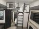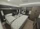 The master suite raises the bar with a king bed, wardrobe closet, dresser, and even a cozy fireplace, while the full bathroom pairs beautifully with the separate guest bath that features its own rear entry. Up top, the loft with dual wardrobe cabinets adds even more flexibility for guests, kids, or bonus storage. Step outside and you’re greeted by three awnings, pass-through storage, and additional exterior compartments that make extended stays feel smooth and organized. And let’s not forget the built-in coffee station, because starting the day right matters, especially when the open road is calling.
